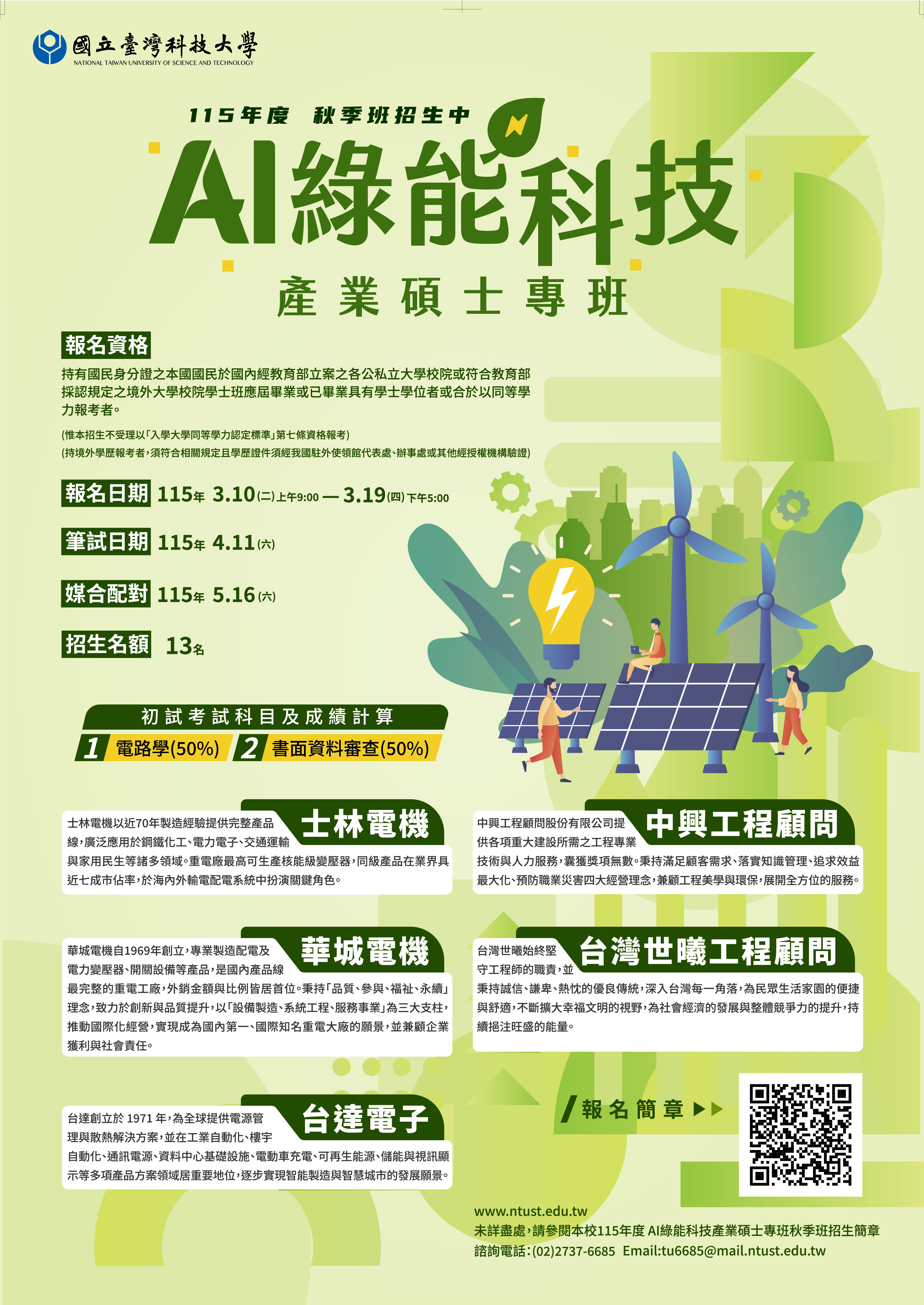 115年度AI綠能科技產碩專班招生