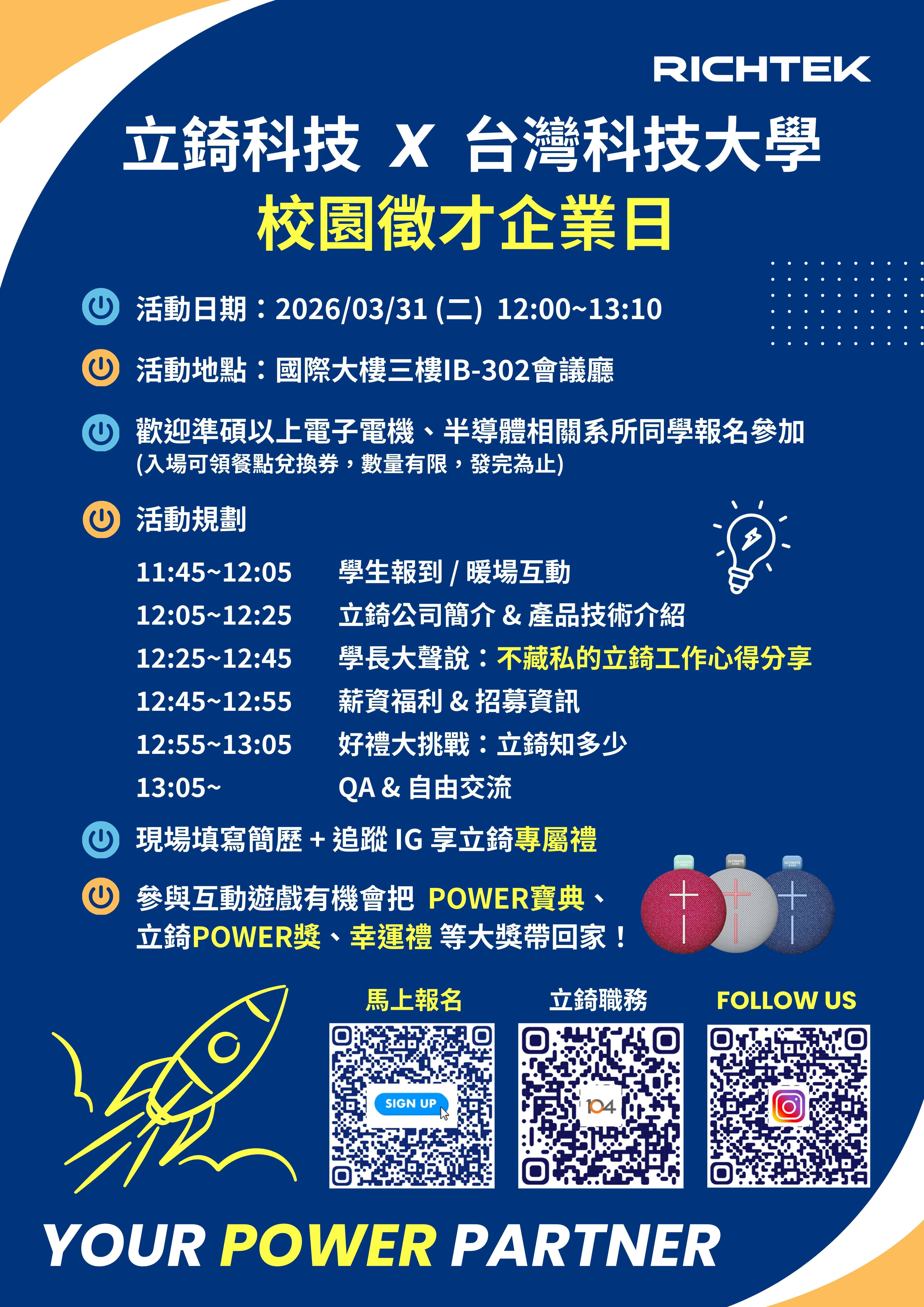 【Power Your Privilege】立錡 x 台科大校園徵才企業日即將於3/31(二)登場!